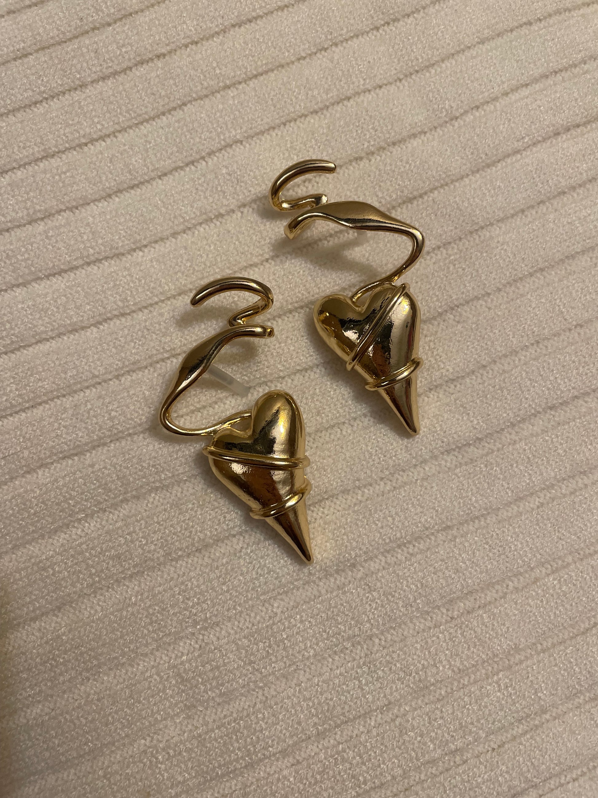 These golden geometric heart dangle earrings feature a modern, stylish design that combines sleek geometric lines with a charming heart shape. Lightweight and elegant, they add a contemporary yet romantic touch to any outfit, perfect for both everyday wear and special occasions.